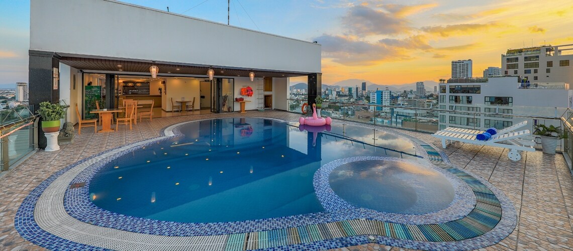 -This room has terrazzo bathtub and balcony in both front and back side of the room that make it fresh and beautiful. -This room is equipped 2 beds, one is 1.6 x 2 m, and one is 1x 2 m, suitable for a family with 3 or 4 persons. -Breakfast included: a la carte, and mini buffet line everyday -Near the My Khe beach, just 5 minutes to walk
