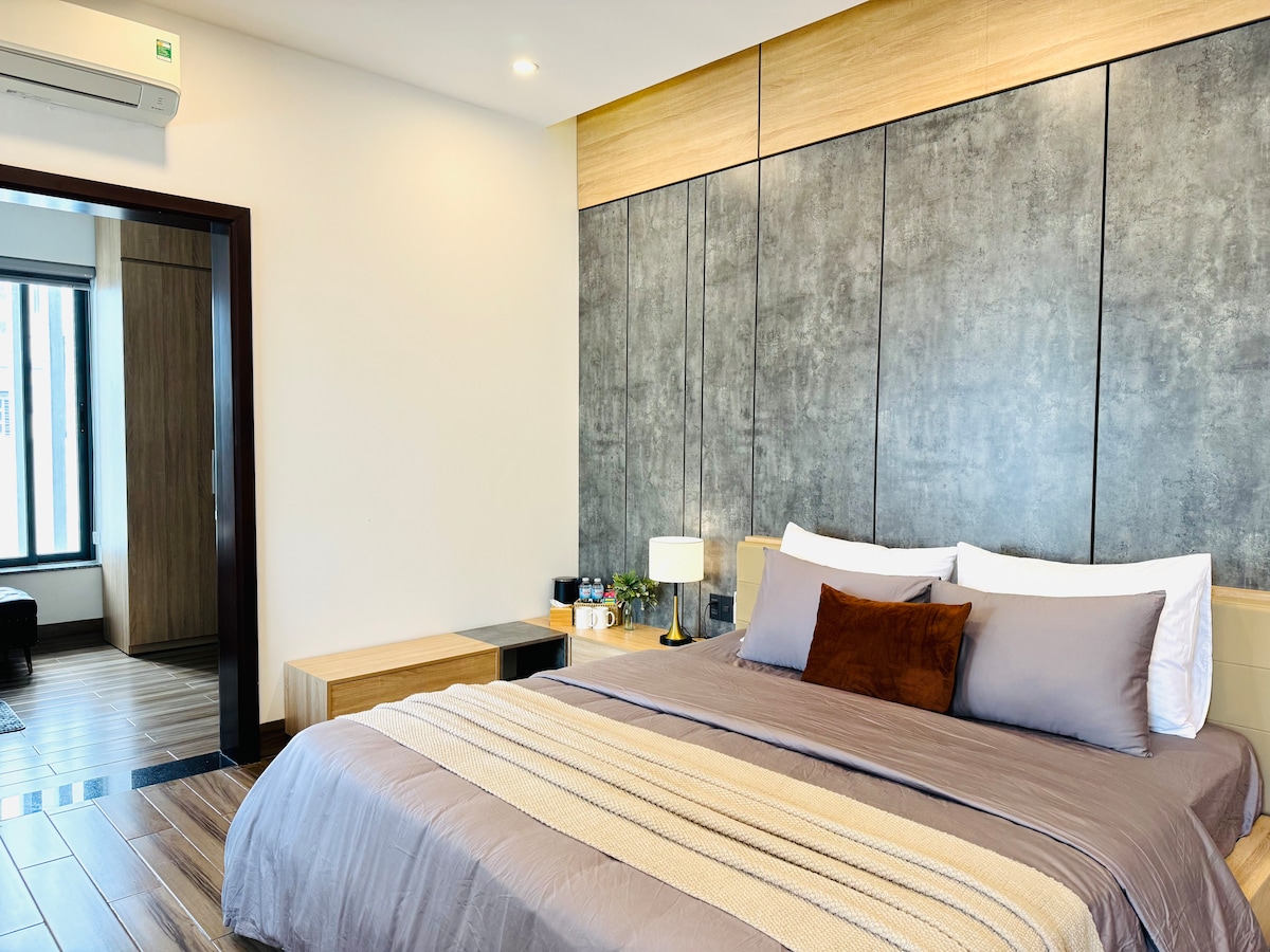 Autumn retreat — warm tones, soft textures, and cozy corners made for slow mornings & movie nights. Our 1BR is spacious w/ comfy sofa bed, and a full kitchen that you can whip up a meal before streaming Netflix on the 100-inch projector screen. Tucked in a quiet cul-de-sac by Han Market and just minutes from Dragon Bridge, it offers both city life and peace Clean, calm, and stylish — like golden hour captured in a room. Take the elevator up, drop your bags, and let Da Nang slow down for you.