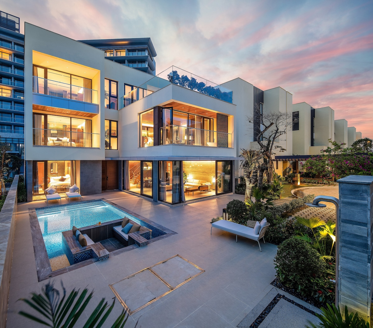 ★ You will have your own SWIMMING POOL with nice pool floats. VIT Villa & Suite 5BR with a large swimming pool will be an excellent size for a group of family/friends with the best AC, WIFI, and Essential amenities 4 King Beds, 1 Queen Beds and 6 spacious bathrooms, luxury living room for an unique luxury and elegant experience like a royal life ★ You can stay villa with private chef and car.