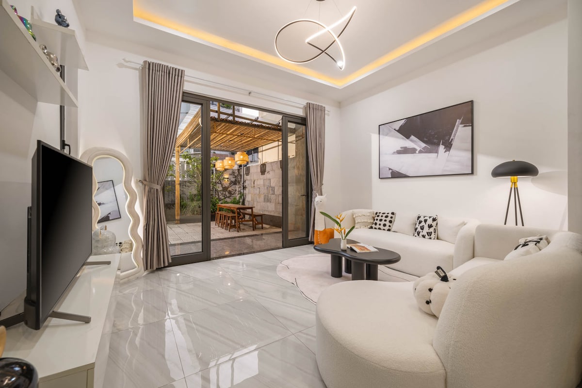 Chào mừng bạn đến với Minh Villas– Một không gian nghỉ dưỡng ấm cúng và riêng tư tại Đà Nẵng. Được thiết kế dành riêng cho khách Airbnb, Minh là một ngôi nhà ba tầng mang phong cách hiện đại, đầy đủ tiện nghi, nằm trong khu dân cư yên tĩnh. - Cách bãi biển 5 phút đi bộ. - 4 phòng ngủ, 4 giường cỡ King. - Mỗi phòng ngủ có phòng tắm riêng và điều hòa không khí. - Điều hòa nhiệt độ phòng khách và nhà bếp. - Hồ bơi ngoài trời tuyệt vời. -15' đến sân bay, trung tâm. - 45' đến Bà Nà Hill, Hội An.