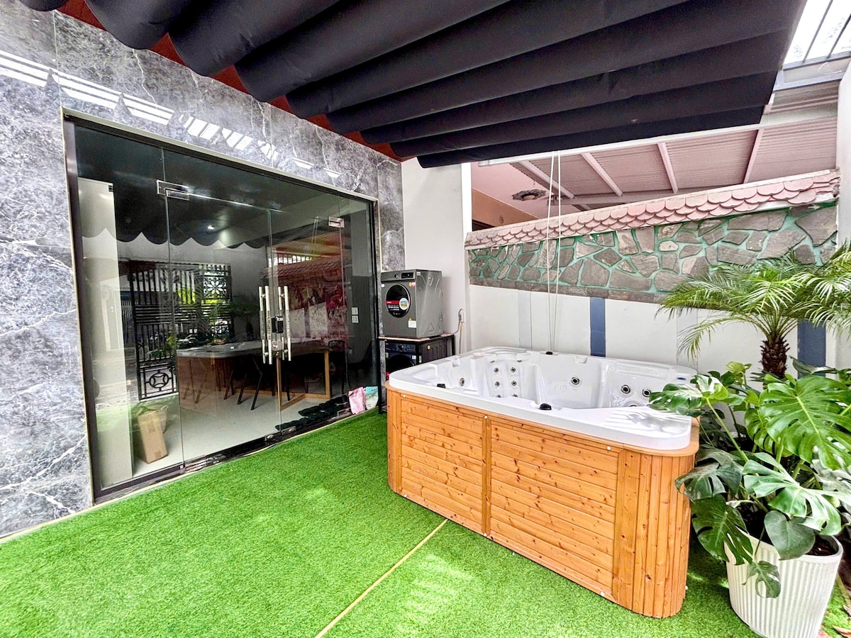 A newly built luxury villa (Nov 2025) on Chính Hữu Street, Sơn Trà, just a 10-min walk to My Khe Beach. This 4-level estate features a stylish ground-floor bedroom and 4 elegant ensuite rooms upstairs, including 2 with large soaking bathtubs. Enjoy a grand living room, gourmet kitchen, and a rooftop wellness floor with jacuzzi, sauna, BBQ, and a lush garden pavilion. Surrounded by premium cafés, restaurants, mini marts, spa and massage services, all steps away.