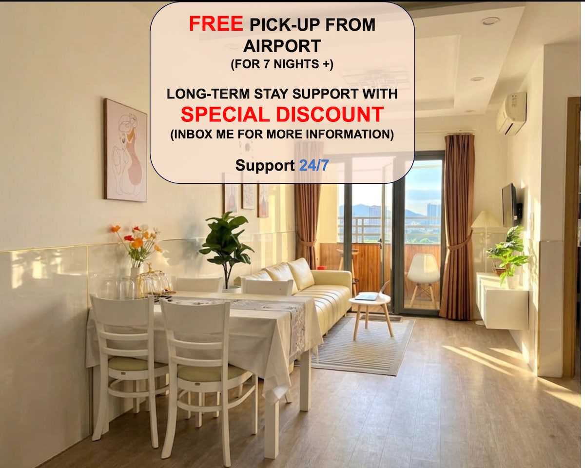 Modern, stylish 120m² condo on the 30th floor with stunning views! 3 bedrooms, 4 beds—perfect for families or groups. Located in the heart of Da Nang, just minutes from Han River, Dragon Bridge & APEC Park. My Khe Beach only 9 mins away. Enjoy spacious living, full amenities & access to a shared swimming pool. 🧹 Daily trash removal and towel replacement upon request ★ Panoramic views | Central location | Pool access ✈️ Free airport pick-up from 3 nights.