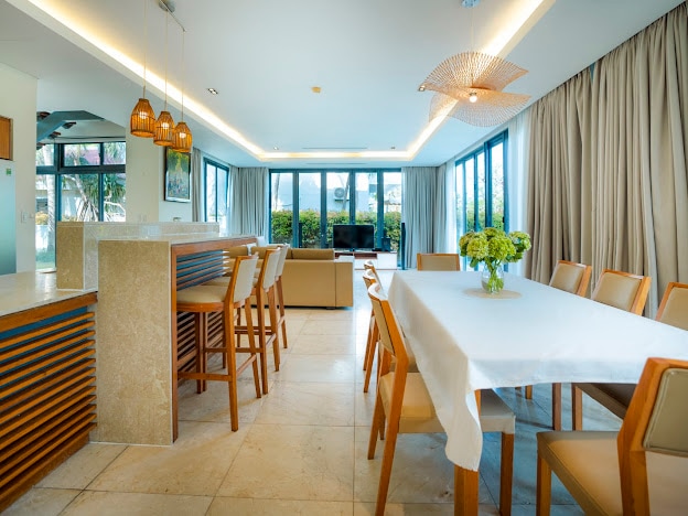 ★ You will have your own SWIMMING POOL with nice pool floats. VIT Villa & Suite 5BR with a large swimming pool will be an excellent size for a group of family/friends with the best AC, WIFI, and Essential amenities 4 King Beds, 1 Queen Beds and 6 spacious bathrooms, luxury living room for an unique luxury and elegant experience like a royal life ★ You can stay villa with private chef and car.