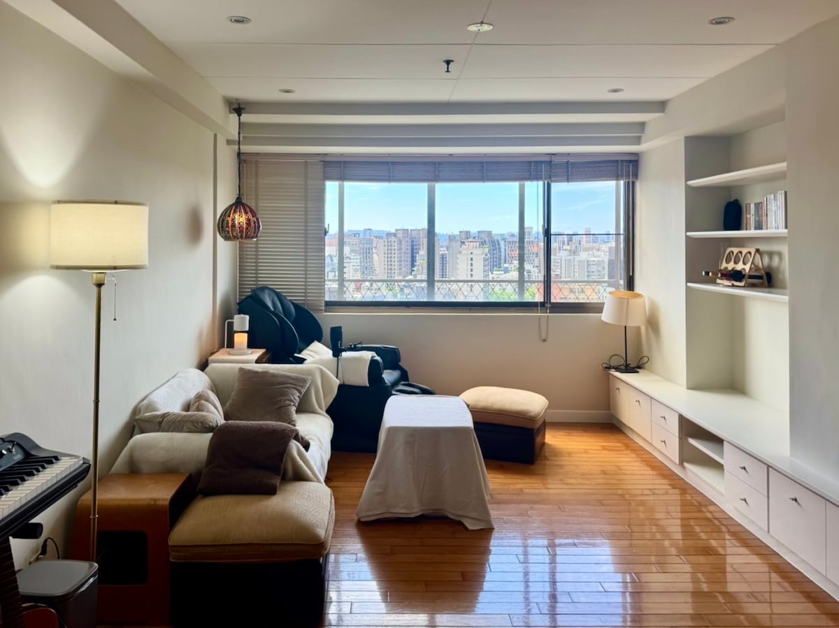 Welcome to The Skyline Executive, a spacious executive loft designed for travelers who value comfort, function, and a serene yet modern vibe. Perched on a high floor in the heart of Xinyi, it offers stunning vistas of Taipei 101 and nearby mountains. Just a 3-min walk to Linjiang Night Market and 9-min to 2 MRT stations, this sunlit loft features a smart, flexible layout and thoughtful touches to make work and relaxation seamless.