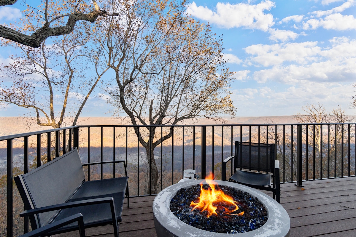 This custom built 2 story, 2 bedroom, 2.5 bath home right on the bluff of Lookout Mountain offers majestic views, peaceful and calming scenery, and the chance to feel like you are right at home. Our goal is to provide what we would want in a vacation home for your family and more. Relax and unwind on the balcony with a cup of coffee, or on the patio with a glass of wine with dinner, or right by the fire pit at night as you watch the sunset. Come and enjoy a slice of heaven.