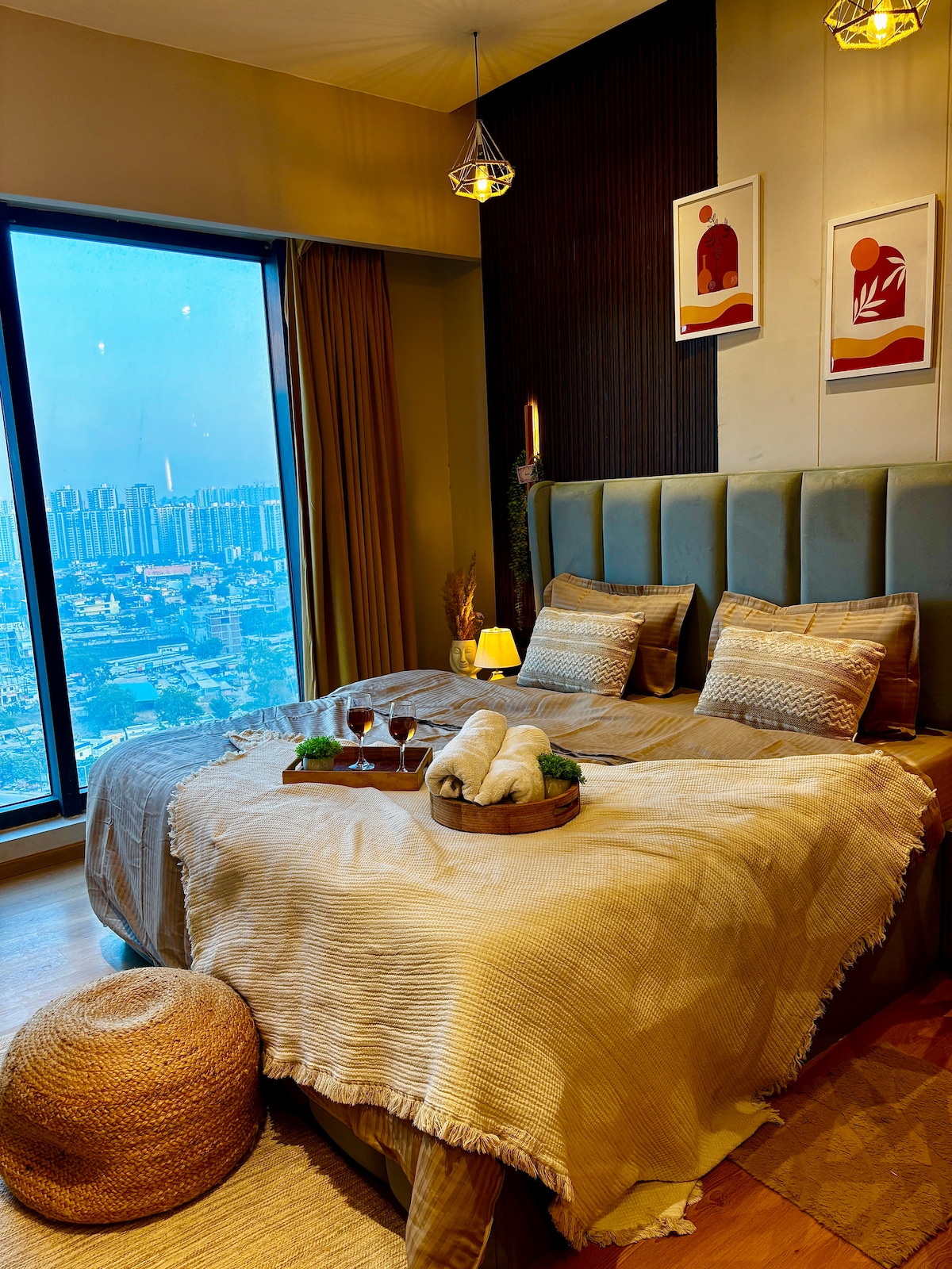 Welcome to Valuura Stay, your calming luxury-boho escape inside Galaxy Blue Sapphire, Greater Noida. Designed in soft nude, white and warm brown tones, this studio blends 5-star hotel comfort with a warm, peaceful home vibe. Perfect for couples, business travellers, and anyone seeking a beautifully curated, IG worthy stay. Whether you’re visiting for work, a weekend getaway, a shopping trip, or simply a cosy break this studio gives you the perfect mix of luxury, convenience and comfort.