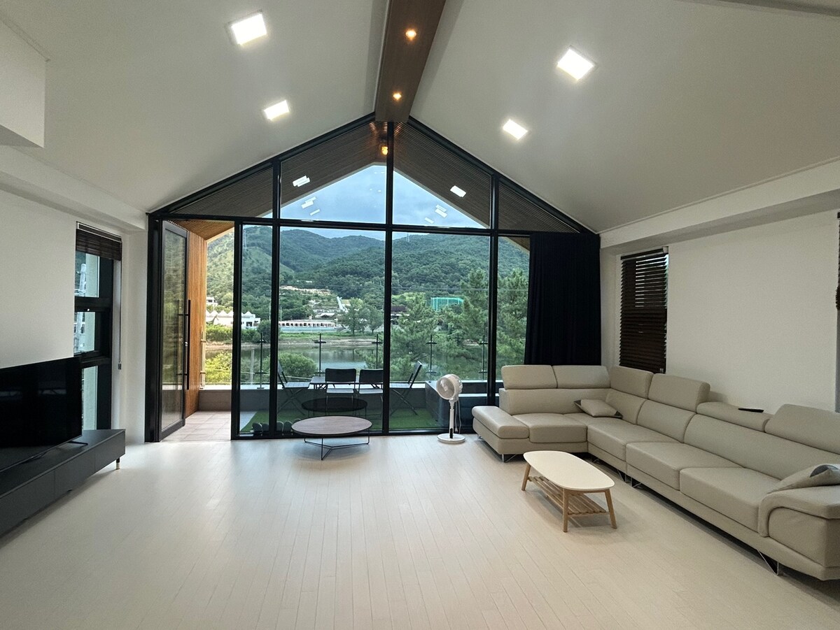 ✔︎ 일상에서 벗어나 쉴 수있는 공간을 제공하는 June house 입니다. ✔︎June house 최근 건축설비 완료한 신축건물 입니다. 내부 자재 인터리어를 고급자재들로 사용하였으며, 가전 가구 또한 최신의 제품입니다. 숙소 특징 ◼︎ 80평형 복층 으로 된 신축건물 ◼︎ 고온 살균세탁한 화이트 침구 ◼︎ 구름같은 침대 매트리스 ◼︎ 방5개 (최대수용인원 8명) ◼︎ 퀸침대 3개 , 싱글침대 2개(벙커형) ◼︎ 헬스장 완비 ◼︎ 야외테라스 ◼︎ 1층 실내물놀이장& 한우전문점 운영중(별도이용) ◼︎ 야마하오디오 8채널 완비 ◼︎ 도심속 자연풍경 ◼︎ 수목원 5분거리