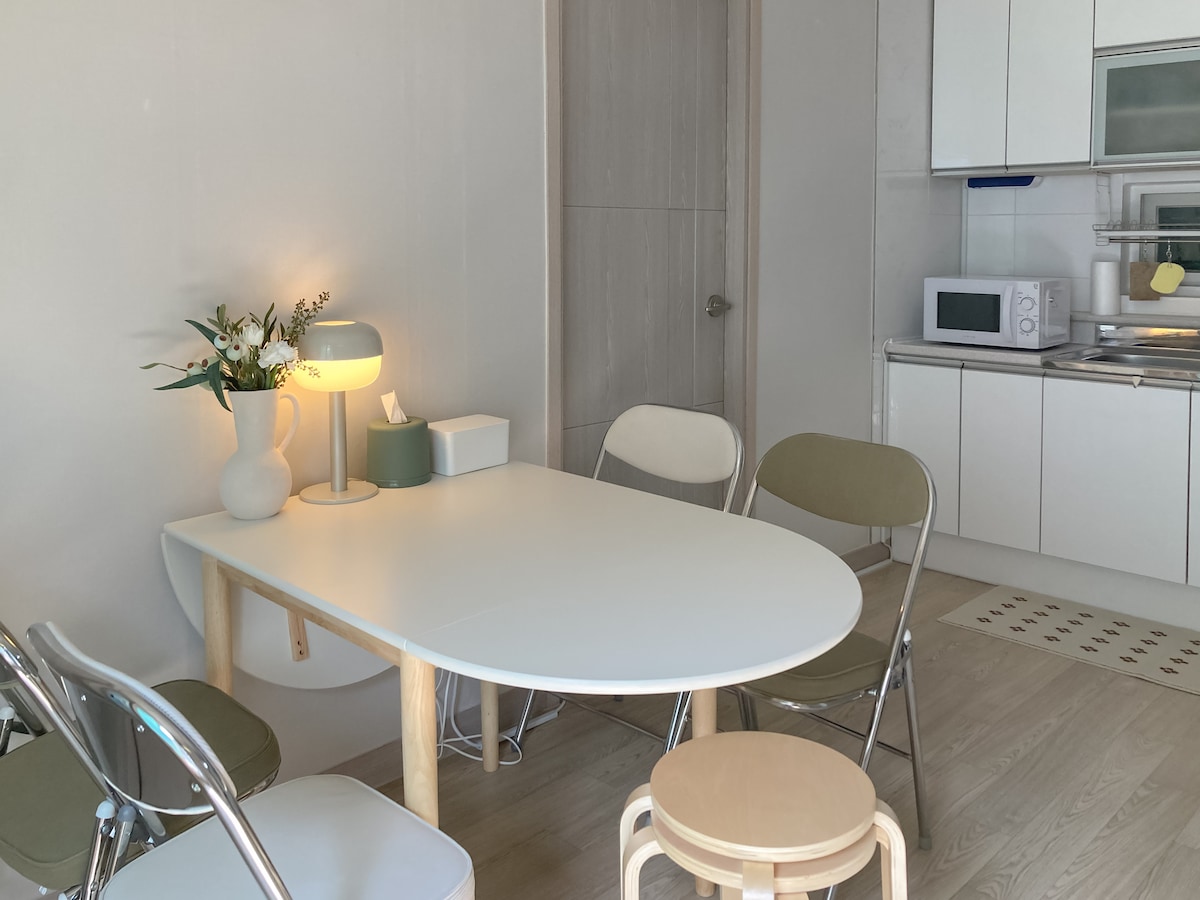 🌈12월 혜택 ●겨울 맞이 웰컴간식 + 포근한 담요 제공 ●2박 이상 커피드립백 🎈“게스트들이 ‘깨끗하고 아늑했다’고 칭찬한 숙소💫 ❣️조용한 겨울, 금요일부터 느긋하게 쉬기 좋은 스테이 🌿 여유로운 쉼, 아늑감성숙소 동대구역에서 도보 10분 거리, 빈티지한 무드와 식물 인테리어가 어우러진 21평 아늑한 숙소입니다. 🏡 숙소는 3층에 위치/ 엘리베이터는 없어요. *작은 운동 후 만나는 따뜻한 쉼, 여유롭게 올라와주세요 :) 늦잠 자도 괜찮아요. 체크아웃은 오후 1시^^ 반려동물도 동반 가능하며, 1층에는 GS25 편의점이 있어 편리성 좋아요. ✨ 숙소 정보 요약 동대구역 도보 10분 /버스 정류장 도보 3분 3층 도보 이동 (엘리베이터 없음) 체크아웃 오후 1시 /캐리어 보관 가능 반려견 1마리 동반 가능 (소형견 기준) 2룸, 넓은 거실 21평 /퀸사이즈 침대 3 넓은 6인용 테이블 /1층 GS25 편의점 감성 식물 인테리어 /빈티지 무드조명