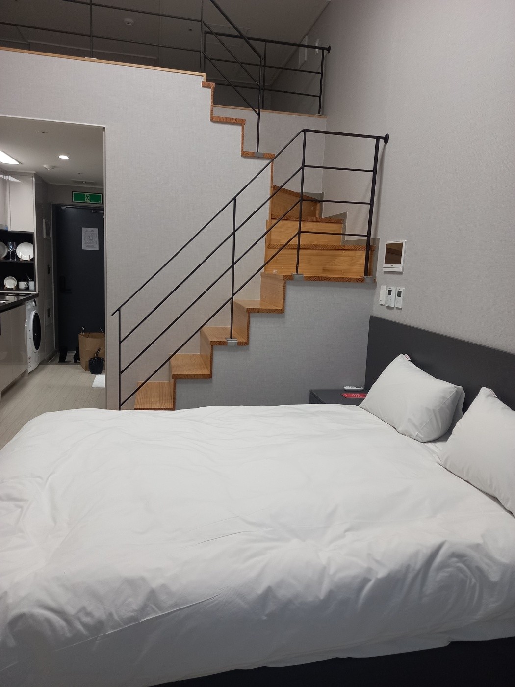 2023년 신축건물로 제일 탑층에 위치한 저희 숙소는 밤에는 멋진 야경과 낮에는 바다뷰와 시티뷰를 동시에 느낄수 있습니다~~ 간단한 식사를 조리할수 있으면 모든 집기류과 침구류는 항상 청결하게 관리하고 있습니다^^ 복층에 침대가 준비되어 있어 누워서도 야경을 볼 수 있고 푹신한 잠자리에서 편안한 휴식을 취할수 있습니다~~