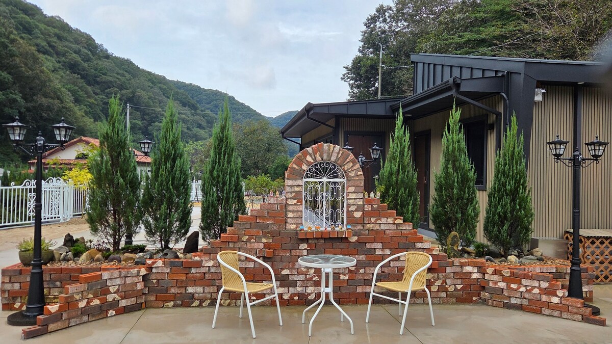 22년 최신건물로 편안하고 깨끗함을 자부합니다. 30평대 넓은 테라스 옆으로, 앞산과 윗산으로 부터 졸졸졸 개울이 흘러, 최고급 카페보다 좋은 뷰와 물소리를 즐길 수 있습니다. 1층에 침대방과 아이들의 놀이공간으로 2층 옥탑방이 있습니다. 주말농장 간접체험과 글램핑 분위기 잔디깎이 체험이 가능합니다. 전원주택을 꿈꾸시는 분들과 가족 휴식 공간으로 최고의 경험 하실 수 있습니다. 음식해드실 모든 집기 구비되어 있으며, 생선,삼겹살등 굽는 요리는 금지이며, 청소비 10만 청구될 수 있습니다. 1층 거실에 20평형 에에컨 한 대 구비되어 있습니다.