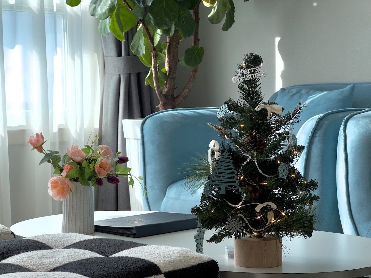 【Eunhasu D&M】【清初三】感性房源/高层/豪华民宿床上用品/新建/3号房(All床/3分钟到达有星温泉站