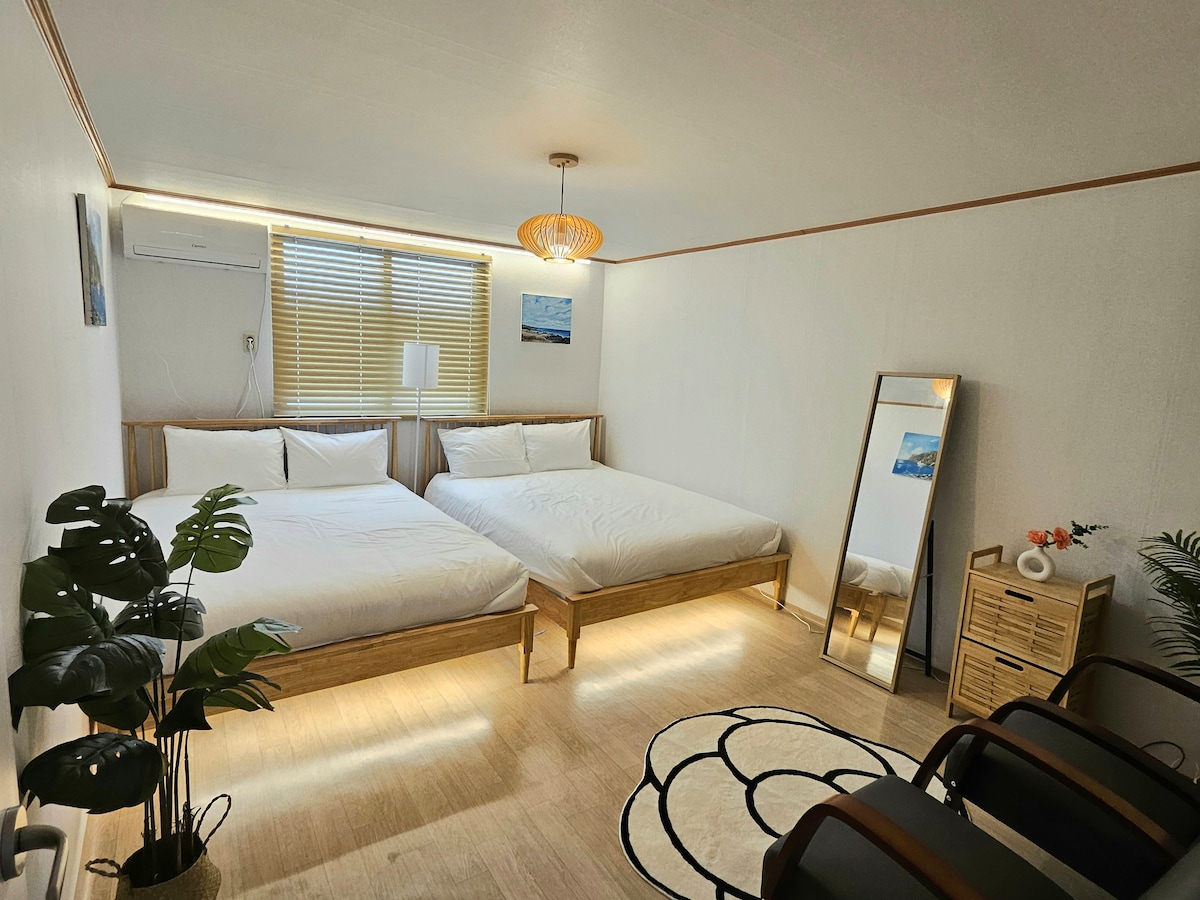 🌞대전역 도보 5분 🌟한화이글스파크 차량 5분 🌈성심당(은행동번화가)도보 3분 ◦숙소 ⁃ 체크인 16:00 ~ 체크아웃 ~12:00 !!! 이른입실 / 늦은퇴실은 어렵습니다. * 최대3인(더블침대1, 접이식싱글매트1) 🙏밤늦은 시간에 소음은 삼가해주세요. 🍴주방 ⁃ 접시와 수저, 컵은 싱크대 상부 선반 안에 있습니다. ⁃ 프라이팬 및 냄비는 싱크대 하단 선반 안에 있습니다. * 냄새가 심한 고기류 생선류는 조리 불가능합니다. ⚡️어메니티 ⁃ 일회용 칫솔, 치약, 비누, 샤워타월 ⁃수건,샴푸,트린트먼트, 바디워시 ⁃고데기, 드라이기 💭재활용품 및 음식물쓰레기 음식물 쓰레기는 비닐에 담아서 싱크대에 놓아주시면 저희가 정리하겠습니다. 재활용품은 건물 입구에 분리수거해주세요.🙏 ❗️건물 내 주차불가❗️ 건물 내 주차공간 부족으로 인해 주차는 불가능한 점 양해부탁드려요 🙏 주변에 주차하시거나 공영주차장 이용을 권해드립니다.