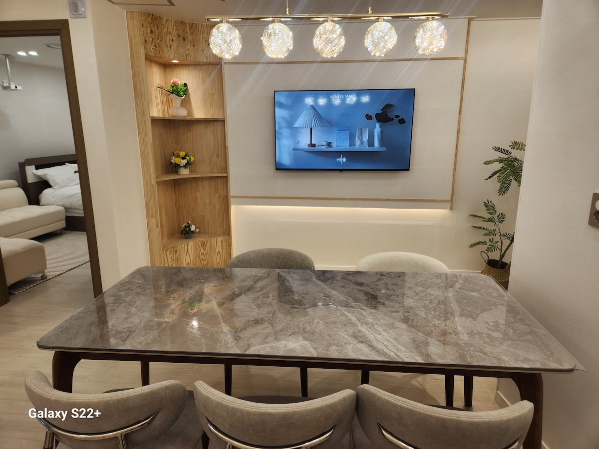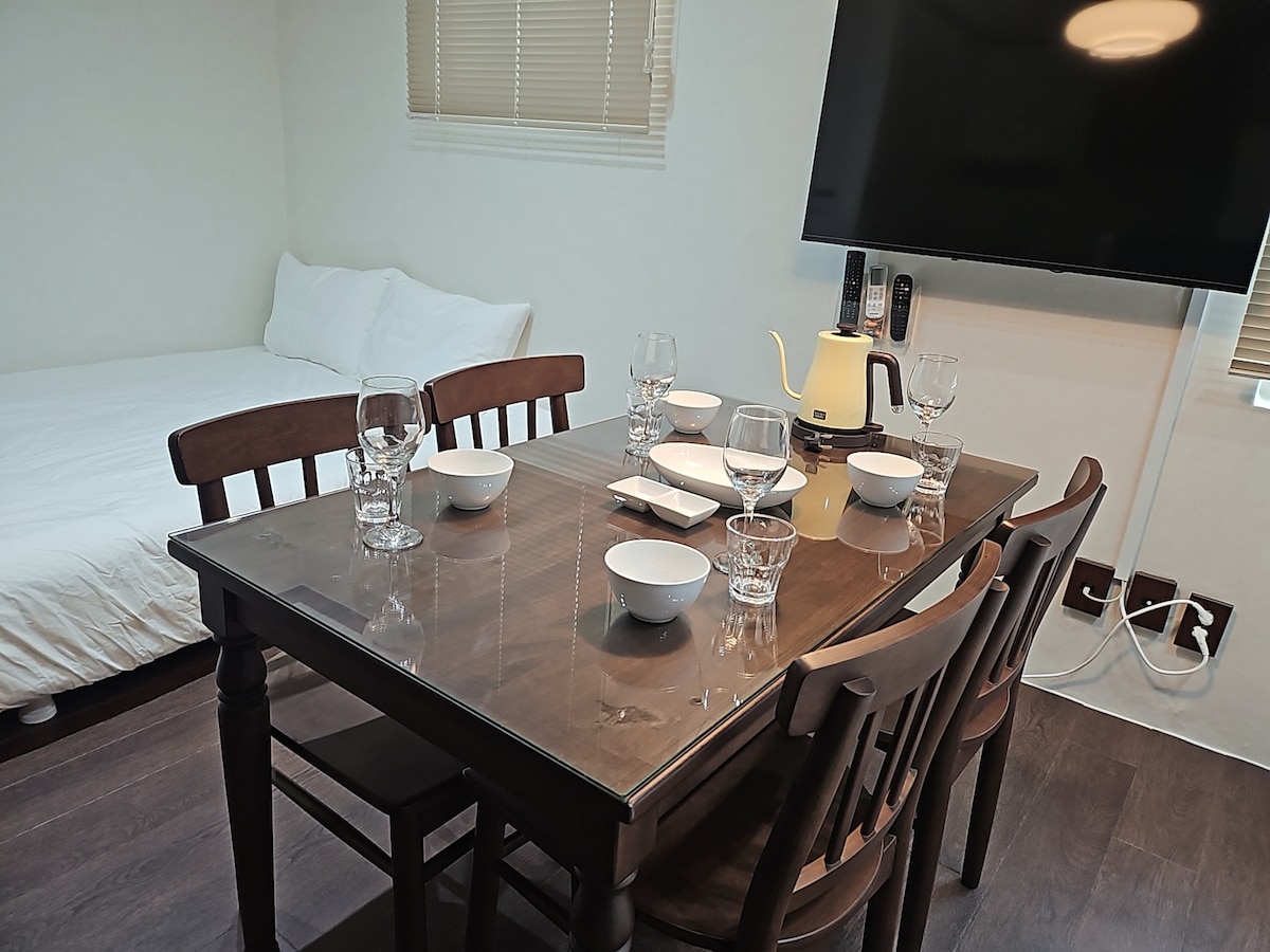 조용하고 편안한 동네에서의 휴식, <정BNB> 여행의 기억이 모두 아름다웠으면 하는 마음을 담아 준비했습니다. 아늑한 도시 대전에서, 따뜻한 추억 만들어 가세요 💗 ✨ 위치 - 용문역 도보 15분 - 롯데백화점(성심당) 도보 20분 - 은행동 으능정이거리 차량 15분 - 한화생명볼파크 차량 20분 🚗 주차 - 숙소 1층 최대 2대 주차 가능 🏠 숙소 소개 🏠 1️⃣ 침실 (2개) - 퀸사이즈 침대 1 (+스탠바이미) - 싱글 침대 2 2️⃣ 화장실 (2개) - 샴푸, 트리트먼트, 바디워시 - 폼클렌징, 칫솔, 치약 - 수건 - 드라이기,고데기 3️⃣ 거실 - 65인치 스마트 TV - 넷플릭스 / 유튜브 프리미엄 - 6인용 테이블 & 소파 4️⃣ 주방 - 냉장고, 가스레인지, 전자레인지, 전기포트, 정수기 - 각종 조리도구 및 식기 🎁 from < 정BNB > - 다양한 보드게임 구비 - 멀티탭, 핸드폰 충전기 - 시리얼, 우유 제공 - 캡슐 커피머신도 있어요 ☕️