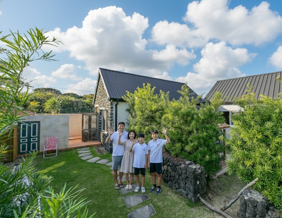 제주도의 자연을 잘 표현하고자 제주의 돌담 이끼 정원과 따뜻한 우드톤의 객실로 이루어진 4계절 무료 온수 자쿠지가 가능한 독채 숙소입니다. 1층방에는킹 사이즈 침대1개 다락방에는 퀸 사이즈 평상형 침대 1개 (추가침구 셋팅 가능) 도보 5분 거리에 런던베이글과 몽탄등 유명 식당과 카페들이 있습니다. 비가 와도 무료로 이용 가능한 온수 무료 자쿠지 이며 성인 4명~6명이 같이 이용 가능한 크기라서 영/유아 아이들에게는 수영장처럼 안전하게 이용하시면 됩니다. (영유아용품 무료 제공: 아기침대. 식탁의자, 분유포트, 튜브,욕조) 다락방의 바다뷰는 손님들이 가장 좋아하는 공간이기도 합니다. 무료 전기 자동차 충전 시설/숙소 전용 주차장 정원에서 바베큐와 불멍도 가능하며 별도의 추가금액이있습니다. 기본 숙박 성인 3인 (추가 1인 당 1박은 2만원) 최대 인원 성인 4명입니다