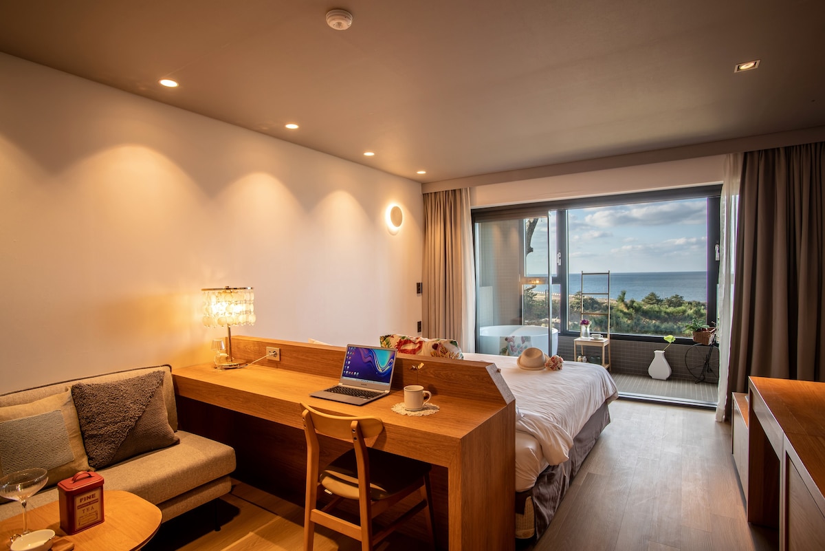 双人床1张,W Ocean Jeju Hotel Type One Room,特级酒店级西蒙斯高级床,一个月住宿29晚特价