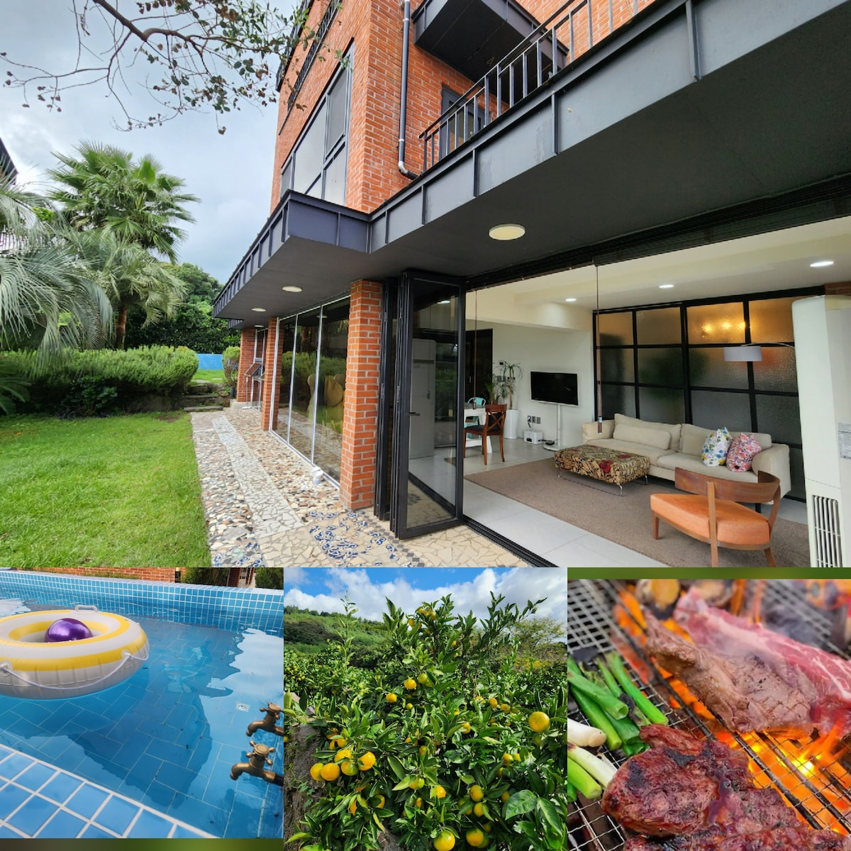 全景橘子园景独栋别墅/私人温水儿童游泳池、烧烤/Seogwipo Ole 市场 5 分钟、中文旅游综合体/位置最佳评分