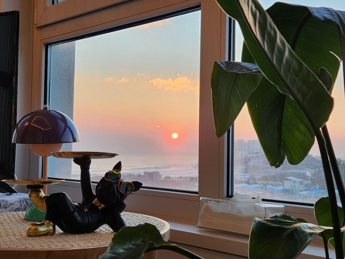 โ Longstay discount automatically applied โ โข 17th Floor/1.5 room with a south-facing balcony and east-facing window. โข Best view lines in Sokcho. enjoy Sunrise over the East Sea, Cheongcho Lake, Seorak Mountain, and city night view directly from the room. โข 20 min walk to Sokcho Intercity Bus Terminal / 5 min walk to Sokcho Fish Market. โข All touch points & floor are disinfected with alcohol after cleaning. โข LG U+ OTT available (your own personal account) โข Cooking is NOT allowed in this room.