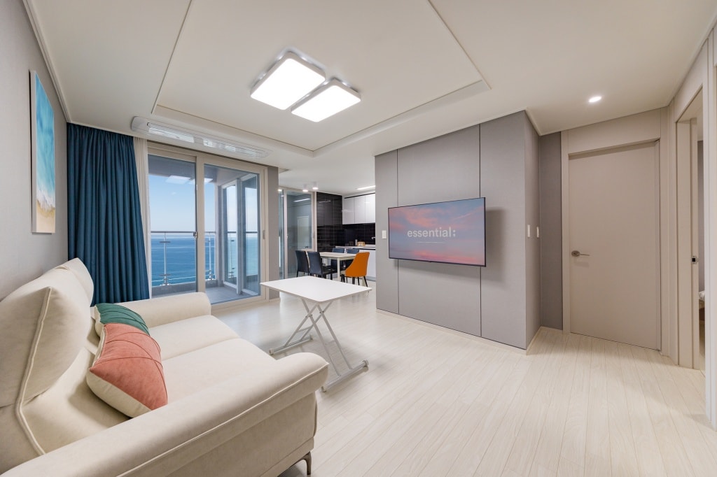 안녕하세요. 저희 숙소는 온 가족이 머물기에 적합한 넓은 숙소입니다. 27층에서 바라보는 파노라마 오션뷰는 말그대로 멋집니다. 우리 숙소에서 머무르며 편히 쉬었다 가시길 바랍니다. [숙소 소개] 강원특별자치도 강릉시 사천면에 위치한 숙소 입니다. 27층 탁 트인 파노라마 오션뷰를 감상하며 좋은추억 많이 만들어 보세요 [객실 유형 방3개 화장실2개] 거실+주방+침실A(킹1)+침실B(더블1)+침실C(더블1)+화장실A+화장실B [객실 정보] - 객실 내 wifi 사용 가능 - 객실 내 세탁기 및 정수기 - 객실 내 냉장고, 캡슐커피머신, 제빙기 - 객실 내 전기밥솥, 전자레인지, 전기포트 - 객실 내 쇼파 및 빈백2세트 - 객실 내 테라스 야외 라탄 테이블소파 세트 [인원추가비용) - 기준인원 4명 / 최대인원 8명 - 기준인원 초과시 1인당 20,000원 - 기준인원 초과되는 경우 예약 전 또는 후 호스트에게 인원 추가신청 필수