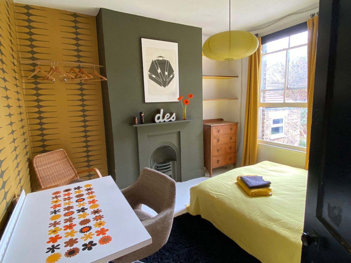 时尚卧室,位于哈克尼中心附近的艺术房屋内