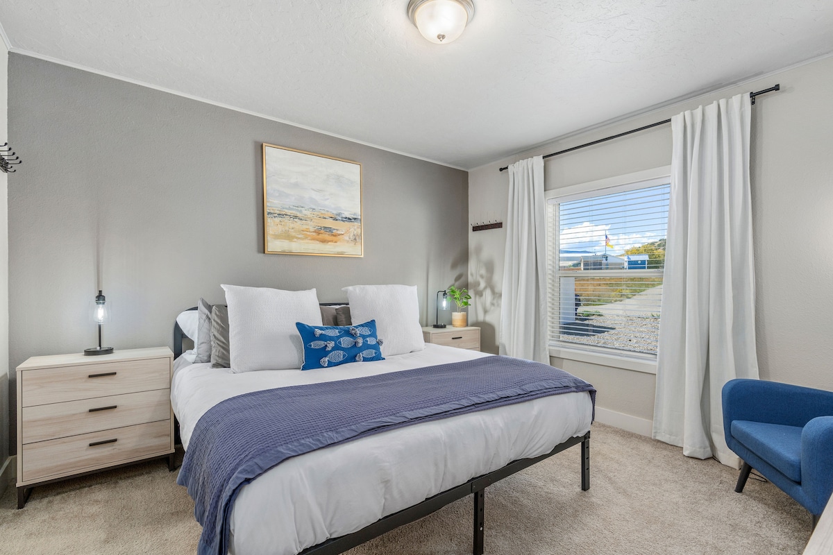 Bring the whole family to enjoy Flaming Gorge in style! This beautiful house was built in the summer of 2022 and is furnished with all-new beds and furniture. You will love the master suite that includes a private bathroom with over-sized soaking tub. The kitchen is lovely, large, and well equipped. We understand that you come to Flaming Gorge to play. That's why we made sure to provide ample parking for vehicles, boats, and other toys. There is a blink doorbell to help protect the toys.