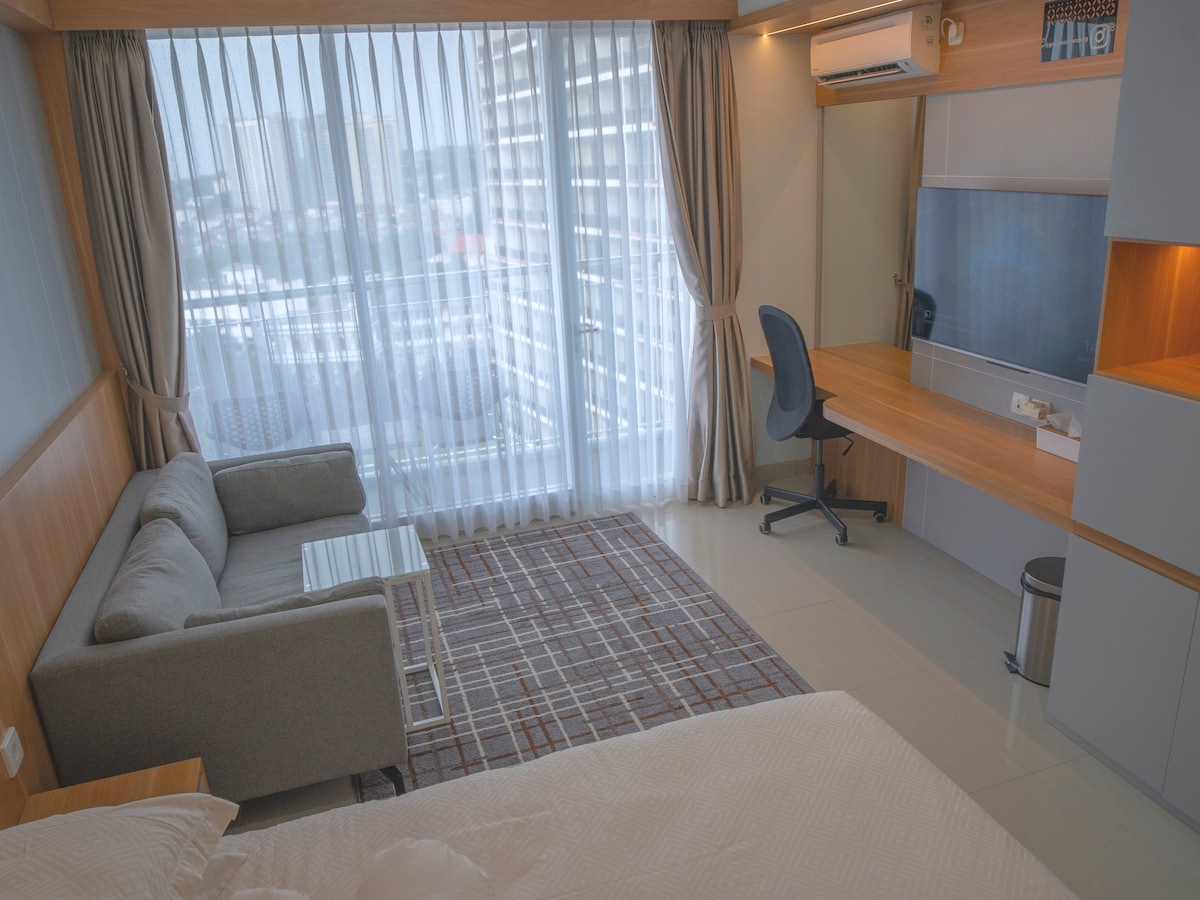 Immerse yourself in the vibrant heart of Bandung at this stylish studio on 10th floor of Parahyangan Residences. Enjoy modern amenities like a fully-equipped kitchen, high-speed Wi-Fi, and a 50" smart TV with Netflix. Indulge in resort facilities, contactless check-in, and nearby conveniences for a perfect staycation, holiday, or work-from-home experience. Now featuring a Reverse Osmosis drinking water, food waste disposal and new washing machine.