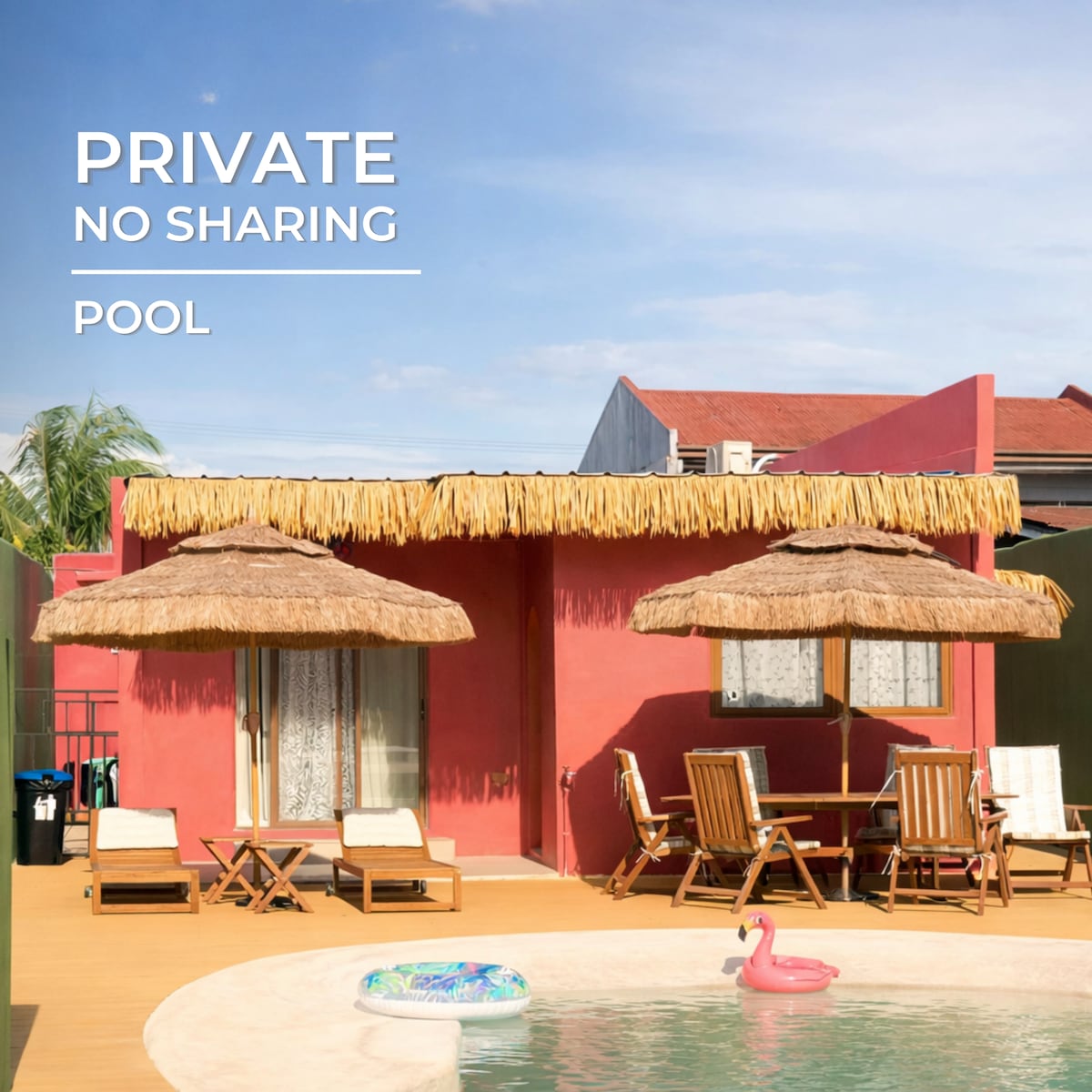 Relax with the whole family and friends at this peaceful place to stay. Enjoy exclusive booking. This place is good to 20pax. Our swimming pool is 50sqm in size. Free use of WiFi, videoke, tv and speaker. You will feel at home in our kitchen with refrigerator, induction stove, rice cooker, electric kettle, cooking wares and kitchen utensils. Try booking with us and have fun.