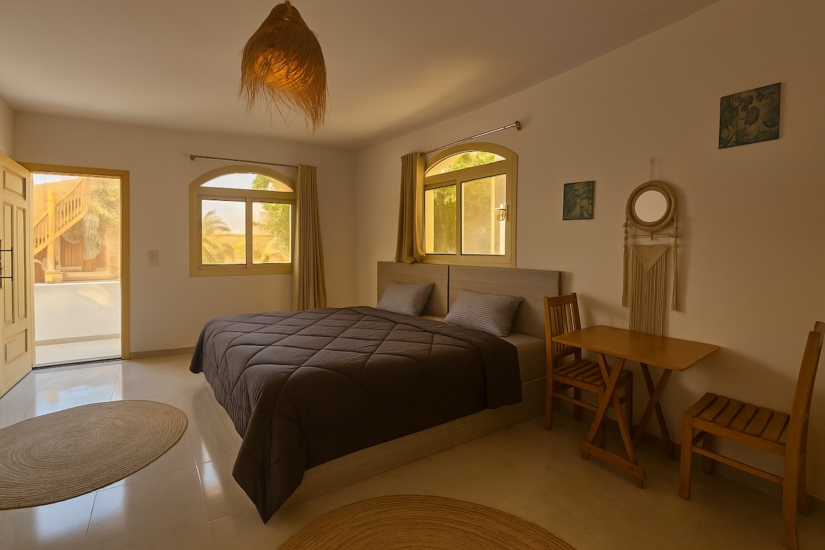 This one is its own little world, tucked in Assalah a few minutes from the beach. This 1-bedroom house is newly finished and personally furnished - simple, thoughtful, and made to be truly lived in. Inside, the space has everything you need, with a modern finish that still feels warm. The real magic is outside. A huge yard sits with a shaded seating area that naturally becomes the gathering point. Mornings drift by slowly here, and evenings tend to fill with friends, tea, and laughter.