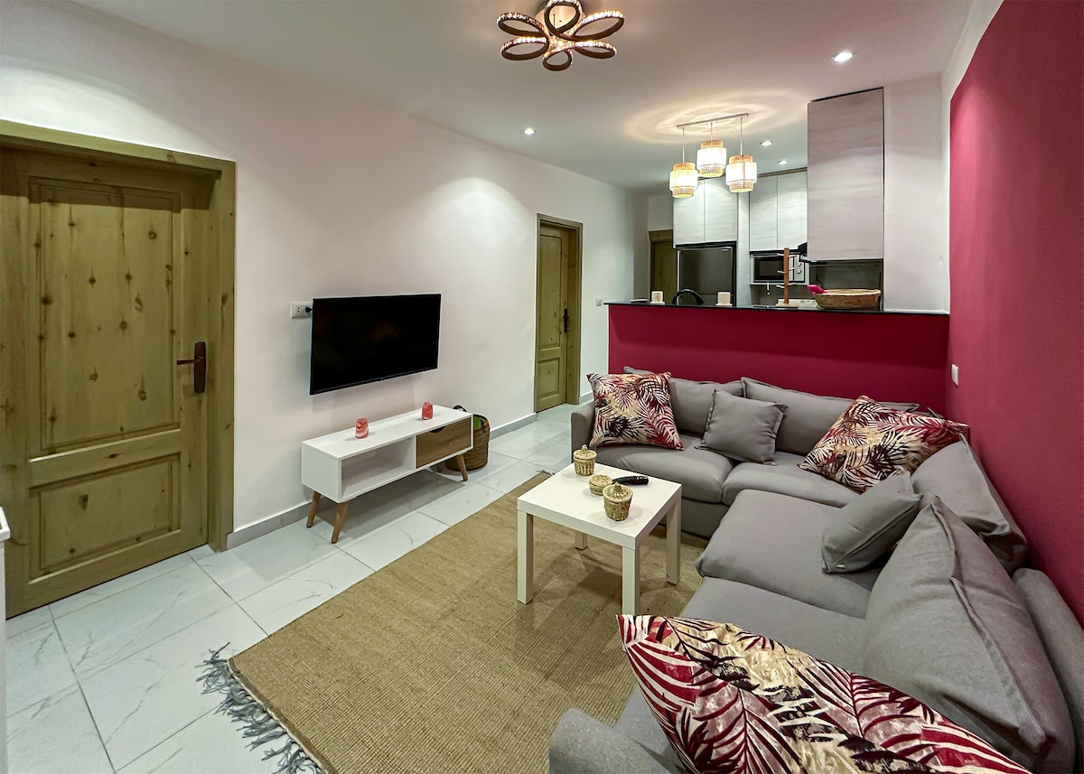 Freshly renovated garden view flat in the ❤️ of Dahab - just steps away from the sea, diving centers and all the shops and restaurants. The flat has new amenities and an inspiring atmosphere, perfect for a peaceful getaway and recharging 🕺 NOTE: According to local laws, we are not allowed to host neither mixed groups nor couples of Egyptian or other Arab nationality without a marriage certificate. Please disregard this message if you hold the nationality of other countries or traveling solo.