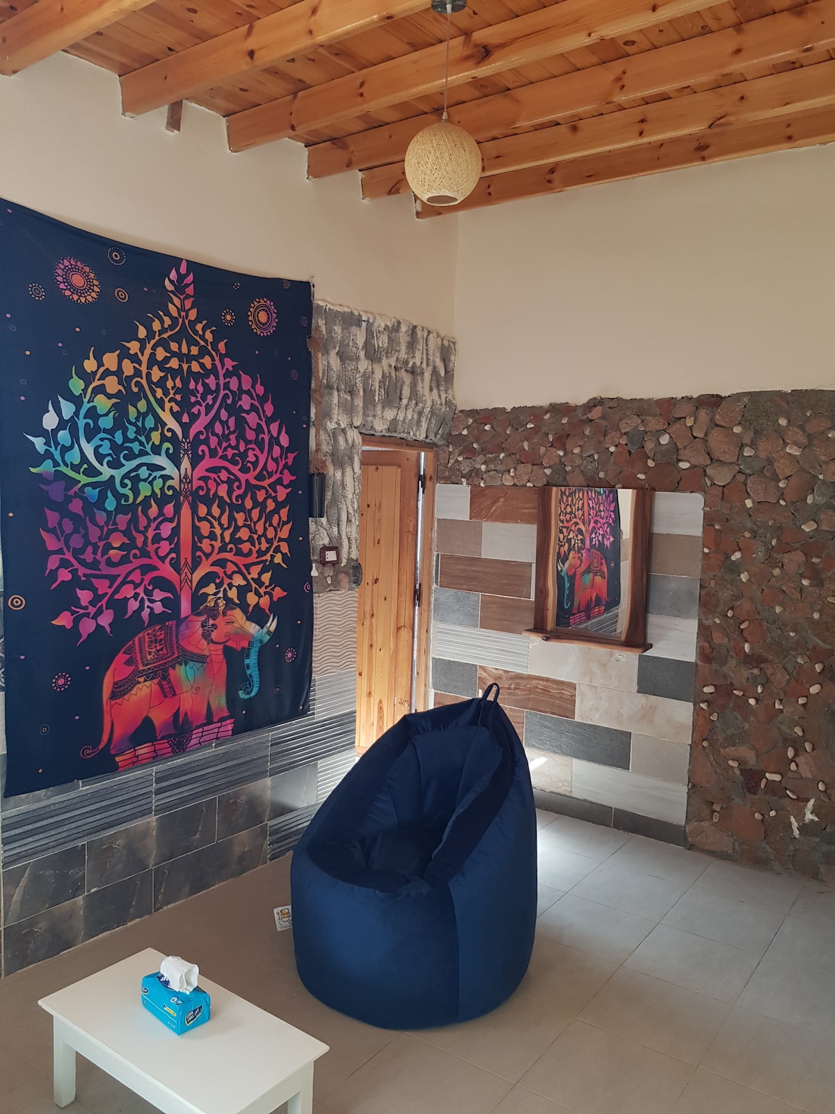 Cozy and Unique: One bedroom with double bed, and a sofa bed for 1-2 additional guests. Brand new, fully furnished, complete with air conditioner. Enjoy an outdoor kitchen and traditional Bedouin seating area. Secure & Private: Located within a safe and enclosed compound. Bicycle rentals available for guests. Family-Owned: Experience the warm hospitality of our family-run business. Experience the unparalleled charm of Dahab at Summer Moon. We can't wait to welcome you! Jules & Mo
