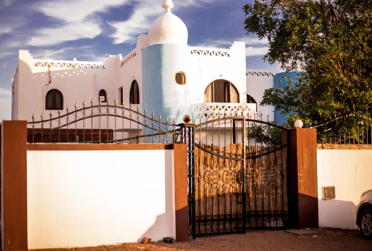 This unique Moroccan style villa was designed by my wife and I. We are both artists and all the design of the house including the furniture is an original work of Art. We designed it to give an impression of a boutique hotel and everything in the house is made in Dahab by professional craftsmen. This is a unique, innovative experience which is enriching yet captures the esthetic of Dahab. The house is less than a minute walk to the beach as well as all types of services.
