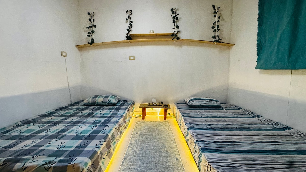 Dahab Square Hostel is a peaceful art-space retreat offering private chalets in the heart of Dahab. Designed for calm living, creativity, and rest, it’s a place where travelers slow down and feel at home. Each chalet is private with its own bathroom and entrance, surrounded by a quiet garden and shared outdoor chill area. Just minutes from the beach, dive centers, and cafés, it’s ideal for artists, divers, and anyone seeking silence, simplicity, and authentic Dahab energy.