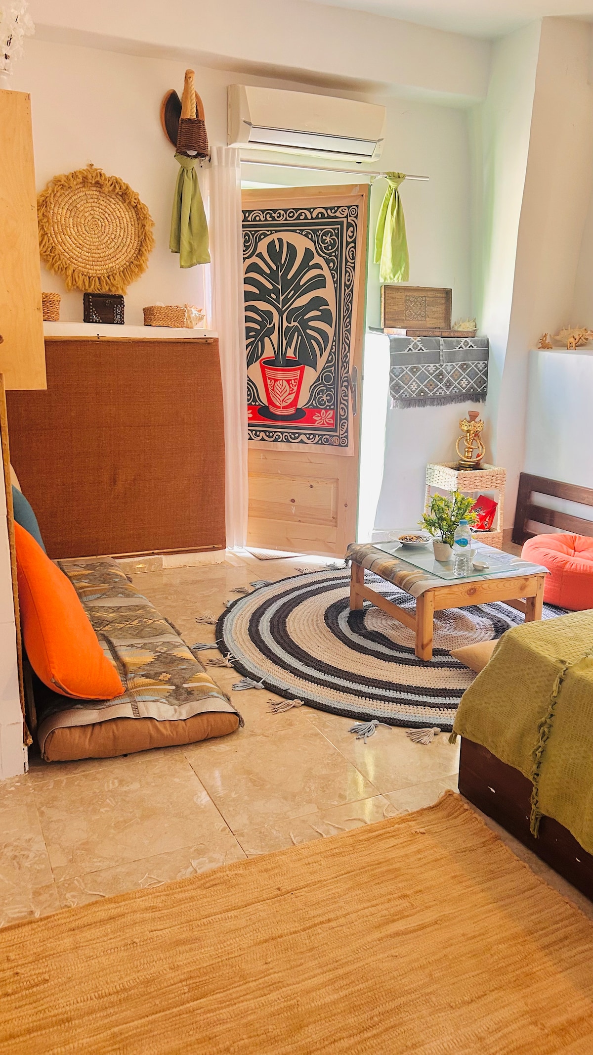 Boho Studio in Al-Asla Central location close to all services Supermarket and ATM, next to Al-Araishi Vegetables Just a few seconds to the beach 2 bedrooms Wi-Fi Hot water Nice outdoor space for coffee and hobbies
