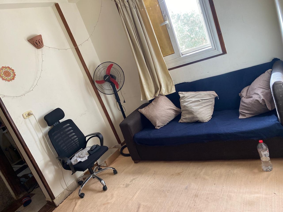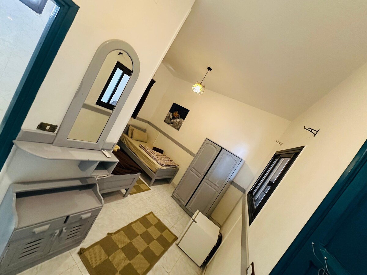 Relax and unwind in this cozy, fully furnished studio in the heart of Assala, Dahab. Enjoy amazing sea and mountain views right from your private balcony perfect for your morning coffee or a sunset wind-down. The studio features a comfy king-size bed, AC, smart TV, and a fully equipped kitchen with a stove, microwave, and all the essentials you need for a short stay or a longer escape. You're just a 2-minute walk to the sea and only 4 minutes from Assala Square