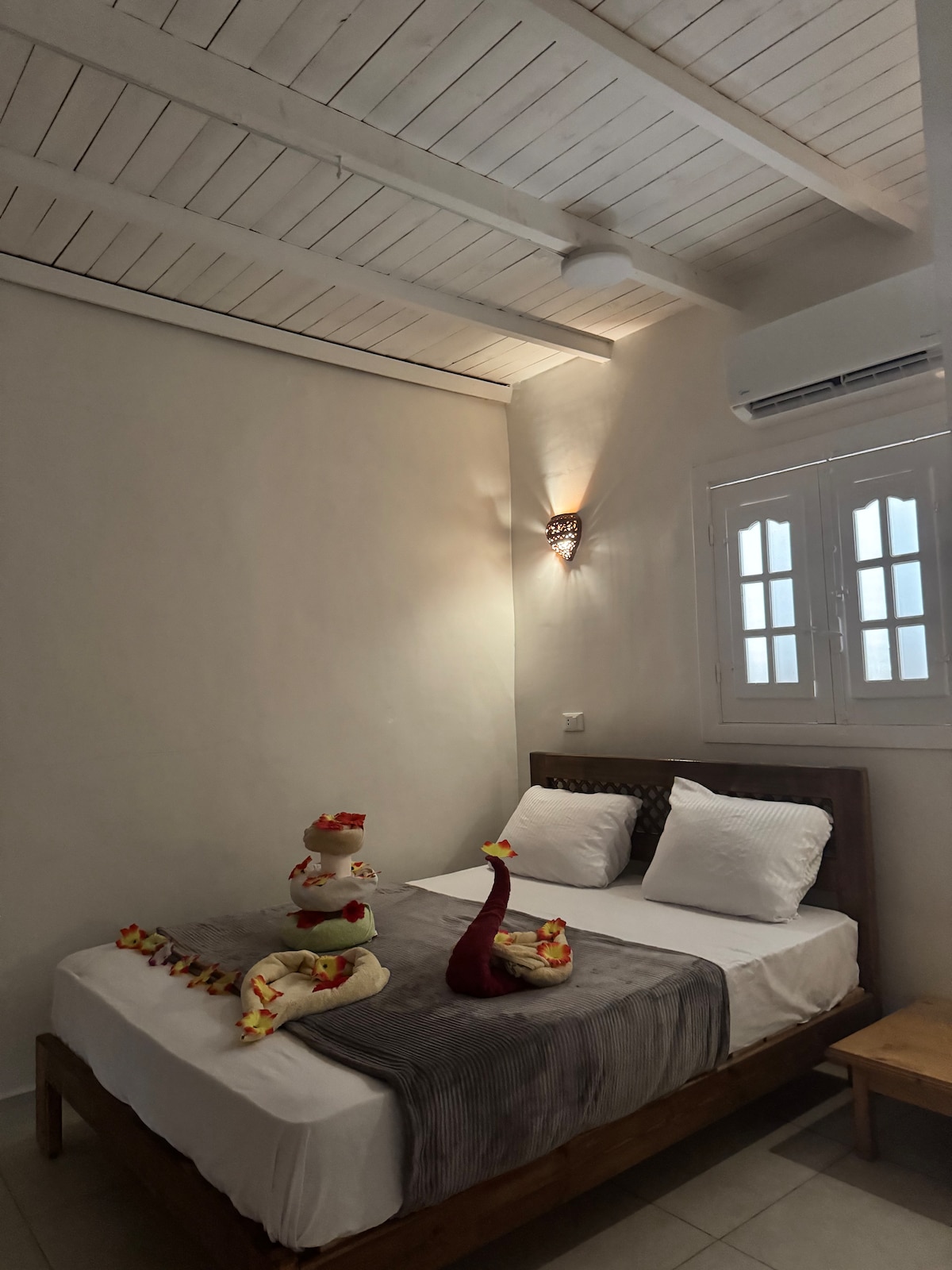 This inviting studio in Dahab’s Lighthouse is inspired by Palestinian heritage, carrying a touch of culture into your stay. Just a minute from the beach and steps from cafés, shops, and a pharmacy, you’ll be in the heart of it all yet tucked on a quiet street - no taxis needed, everything is right outside your door. Perfect for first-timers or Sinai regulars who stay long term. And in true House of Riche style, we stock a starter kit to get you cozy and offer guidance whenever you need it.
