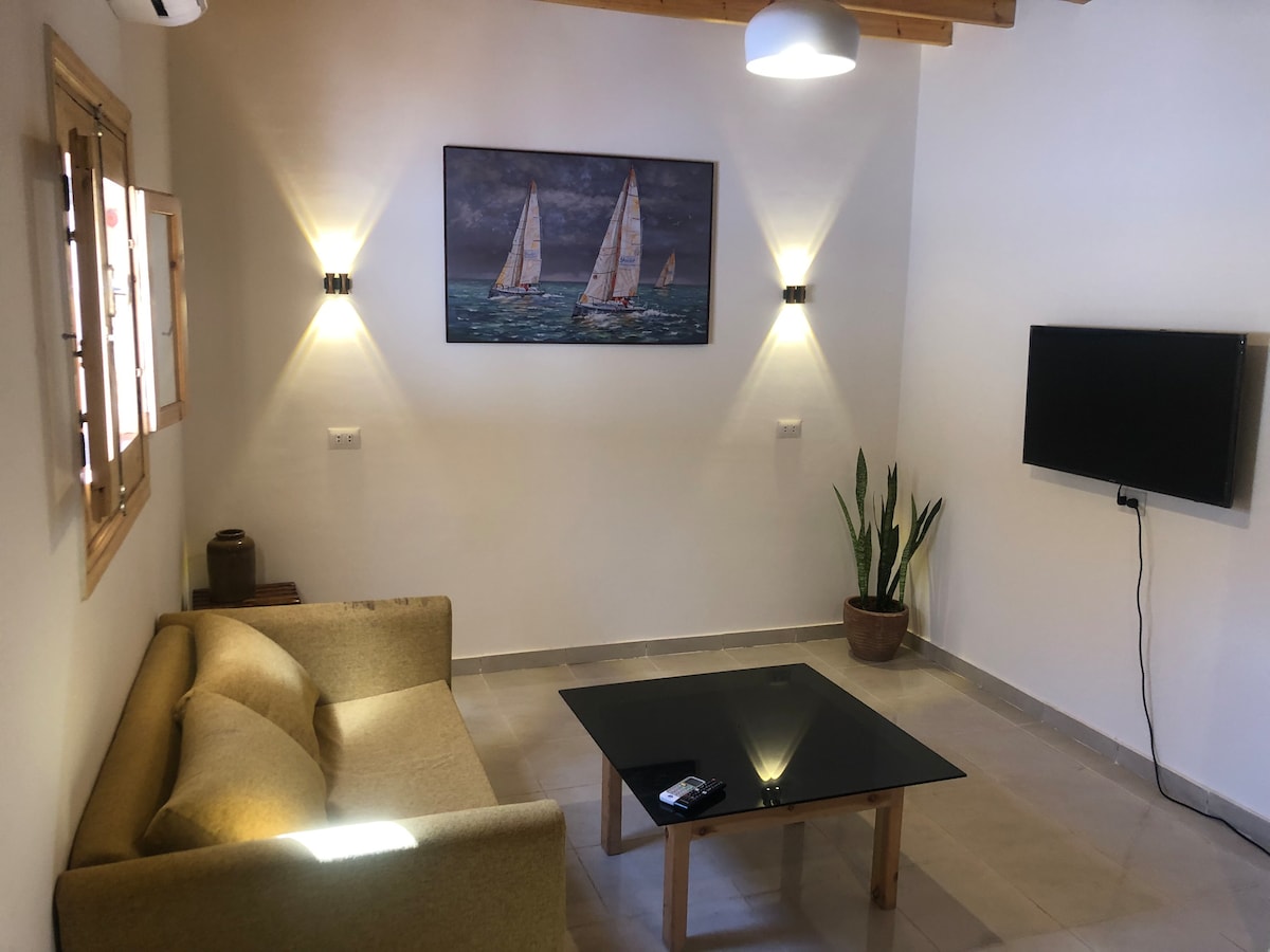 Just 10 steps from the calm Assala Beach and close to both the lighthouse and town center, this house offers tranquility and nature. Decorated with handmade pieces by local artisans, it has 2 bedrooms with double beds, air conditioning, a living room for yoga or relaxing, office space with strong WiFi, a kitchen, and a bathroom. The freediving instructor owner can introduce you to the local freediving scene or help arrange trips and equipment rentals. Ideal for peaceful living or remote work. ✨