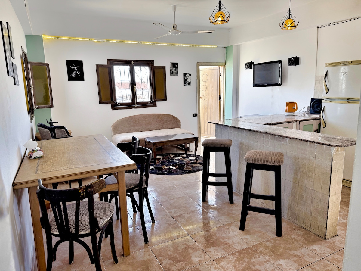 Relax and unwind in this cozy, fully furnished studio in the heart of Assala, Dahab. Enjoy amazing sea and mountain views right from your private balcony perfect for your morning coffee or a sunset wind-down. The studio features a comfy king-size bed, AC, smart TV, and a fully equipped kitchen with a stove, microwave, and all the essentials you need for a short stay or a longer escape. You're just a 2-minute walk to the sea and only 4 minutes from Assala Square