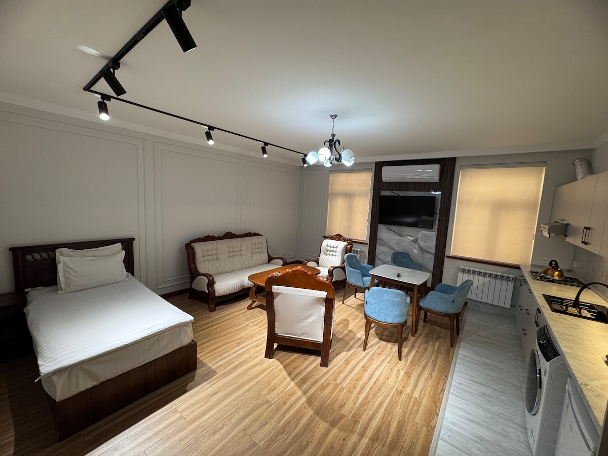 Welcome to our brand-new and cozy apartment in the heart of Samarkand! You’ll feel right at home here. The apartment is fully new, featuring modern design and high-quality finishes. It comes with all the essentials: a fully equipped kitchen, a comfortable bedroom, high-speed internet, and a warm atmosphere. The location is perfect for exploring historical landmarks, and there are cafes and shops nearby. We’re confident that your stay will be both comfortable and memorable!