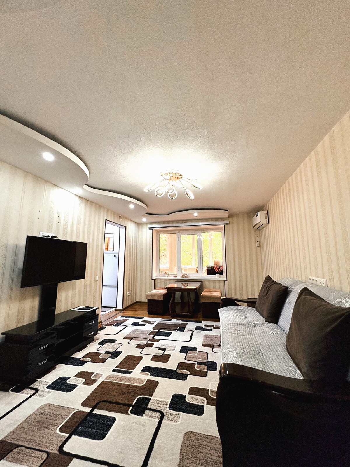 Современная и уютная квартира с новым ремонтом. Спальня с комфортной двуспальной кроватью, очень мягким матрасом,просторная гостиная с мягким диваном, оборудованная кухня и ванная. Есть Wi-Fi, Smart TV, стиральная машина, утюг, фен, свежее бельё и полотенца. Тихий район, всё рядом. Идеально для пары, семьи или деловой поездки. Заселение бесконтактное, мы всегда на связи!