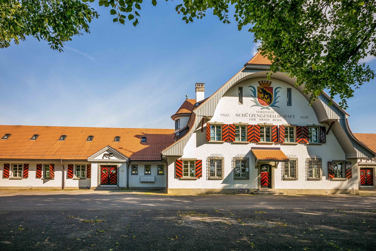 Unter dem Dach des ehemaligen Schützenhauses der Stadt Bern präsentiert sich dir ein stimmungsvoller Ort der Ruhe und Entspannung. Eine stilvolle Unterkunft als Ausgangsort für Ausflüge in die Stadt Bern oder in die Natur. Innert 20 Minuten mit öffentlichen Verkehrsmitteln im Herzen der Altstadt Bern. Innert 5 Minuten im Wald oder auf offiziellen Wander- und Velowege der Schweiz. Auf Wunsch können Frühstück oder professionelle Massagen dazu gebucht werden. Siehe «weitere wichtige Hinweise».