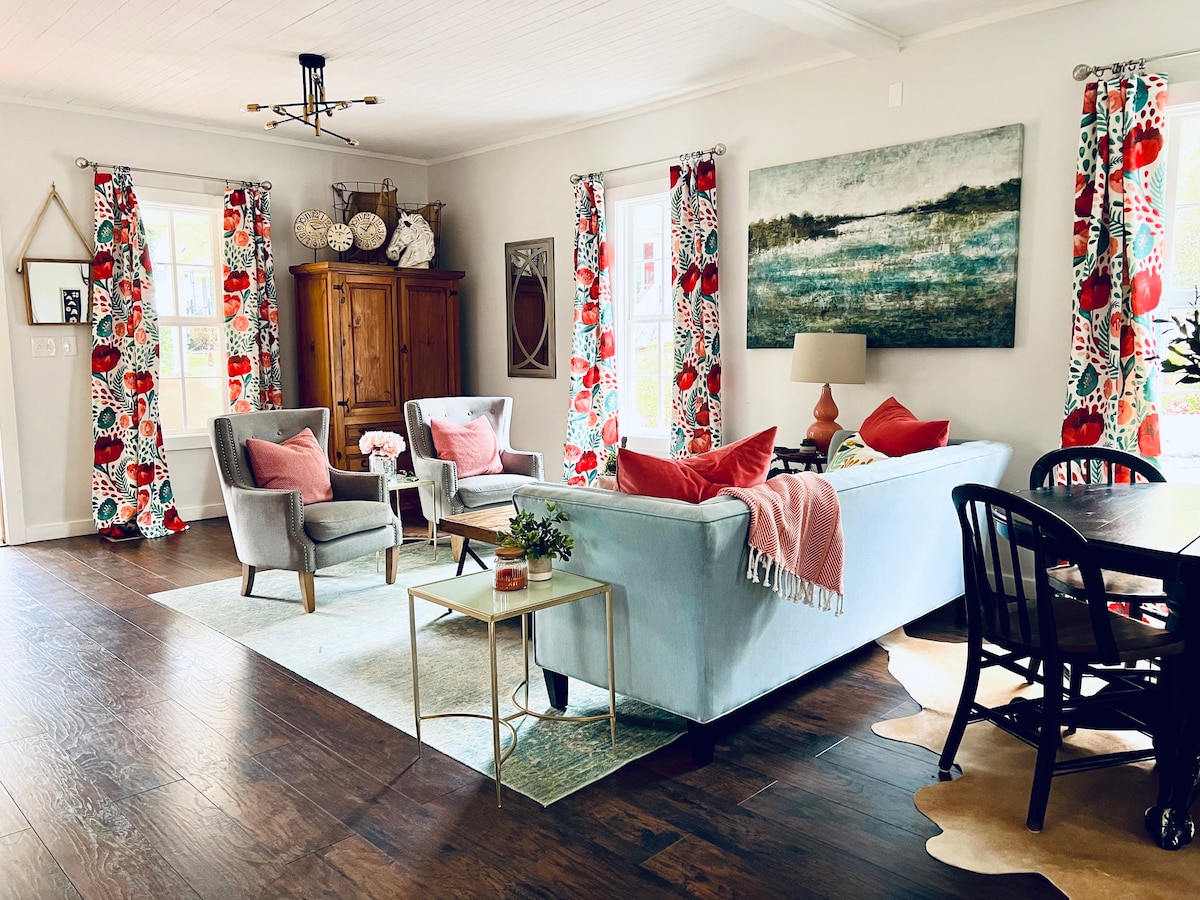 Located just blocks from the historic Dahlonega Square, Piccolo on Pine is quintessential southern charm. Built in 1935, our darling designer cottage boasts a tea sippin' front porch, full kitchen, and updated interior, stylish interior design, great wifi. Walking distance to some of Dahlonega's best restaurants, museums, and boutiques. Need more room? Our Town & Porch house is just across the street! Come 'sit a spell' and experience stylish southern hospitality at Piccolo on Pine!