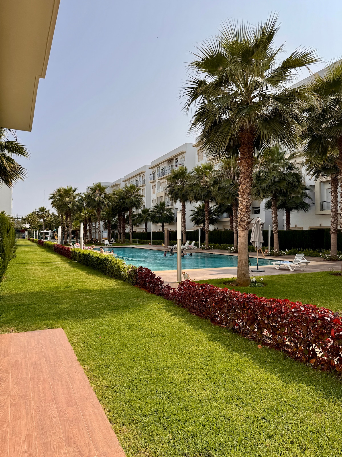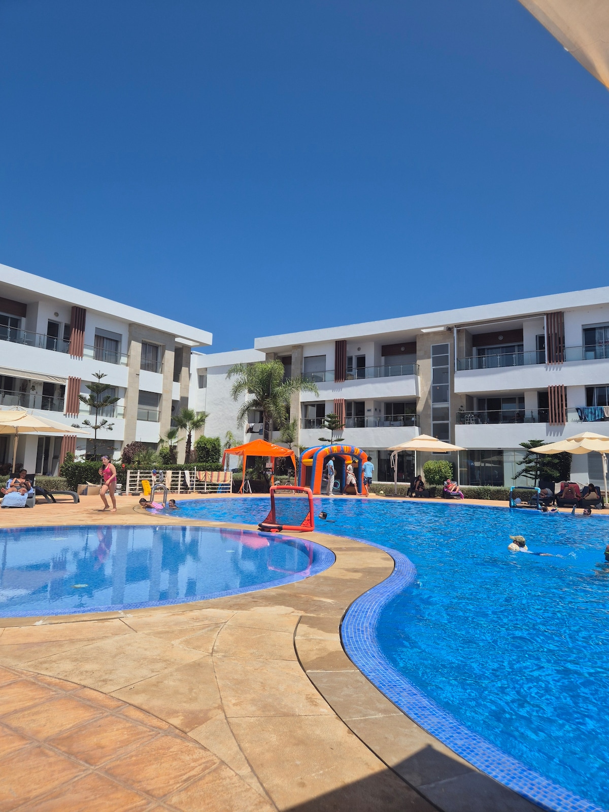 Welcome to our lovely apartment! Nestled just a short 20-minute walk away from the beautiful beach, it's a mere 5-minute drive if you prefer to take the car. For those keen on exploring, the train station is a convenient 5-minute stroll, making it easy to reach your desired destinations. You'll also appreciate the fact that Rabat is just a quick 20-minute drive away. A lot of people come here and say that they really like it. (La piscine est ouverte tous les jours sauf le lundi)