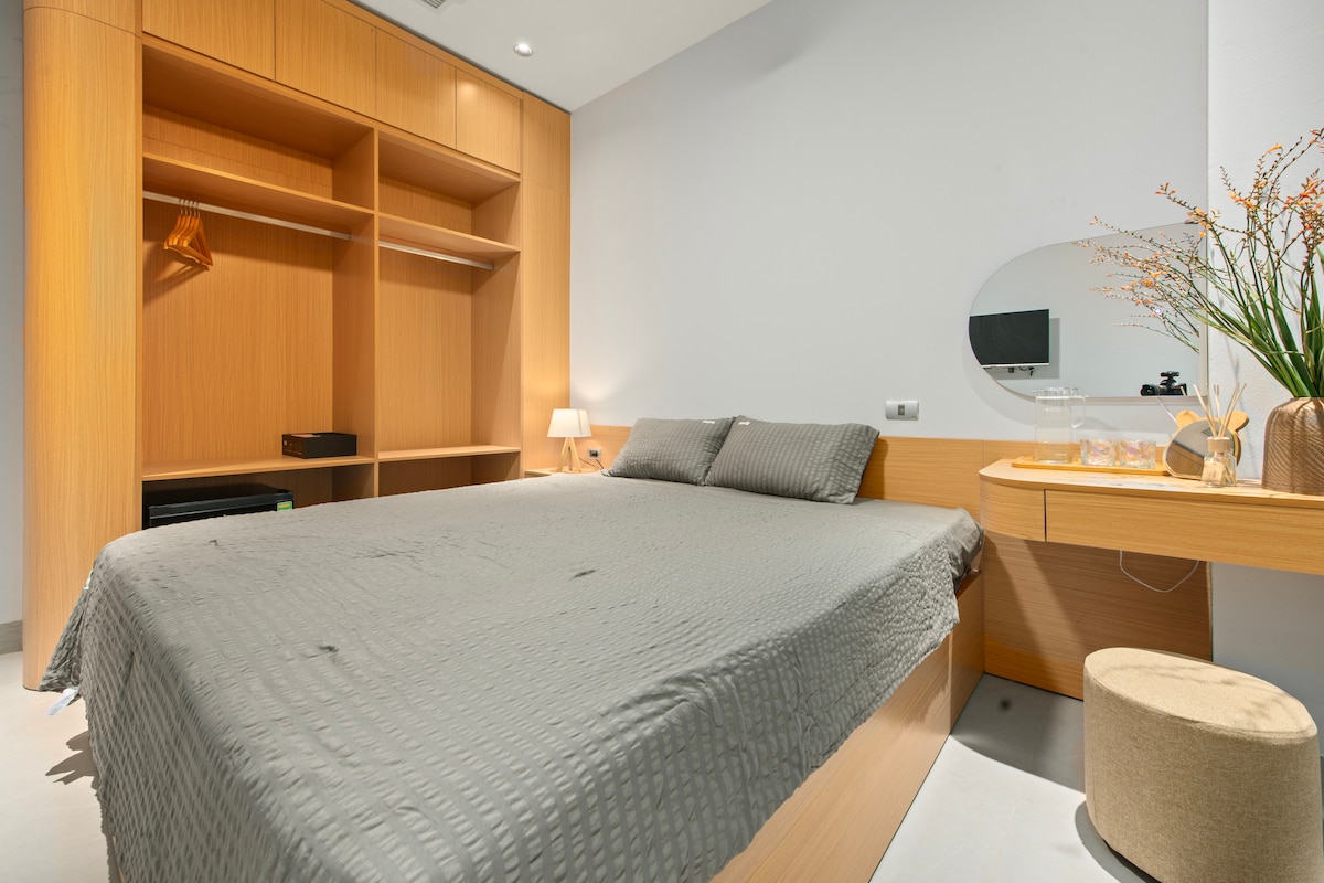 This beautiful apartment in Tay Ho is located on the 6th floor of our new building - Hanoi Housing 32. It has one bedroom, one bathroom, and an open livingroom-kitchen. It is nicely designed. Full modern furniture and equipment is provided. The wooden floor helps the apartment easy to clean. Moreover, the building's location is within walking distance to convenience stores, restaurants, shops, bars, pubs. Please note that there is no natural light or balcony at the apartment