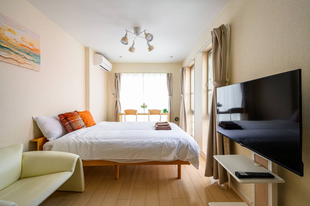 【新开放】东京市中心的涩谷站步行 3 分钟即可到达,交通便利,环境安静祥和(步行 2 分钟即可到达新开发的新出口)。毗邻涩谷新地标设施 "涩谷樱花舞台",步行即可到达惠比寿和代官山。这里有众多时尚餐厅、咖啡馆和商店,是一个绝佳的地理位置。 新的现代化公寓楼的房间非常干净舒适。请与您的爱人共度一个非同寻常的私人空间。 卧室配有两张舒适的大双人床和一个大屏幕,您可以在观看电影等活动中放松身心。 我们提供适合长期居住的设施和便利设备,希望您与亲人在这里度过美好的时光。 提供设施:免费Wi-Fi / 两台空调 / 大型冰箱 / 带加湿功能的空气净化器 / 带烘干功能的洗衣机 / 熨斗 / 厨房用品等 ※所有家具和电器都是全新的,即使长期居住,您也可以在这里舒适地生活。 ・配备了投影仪和大型屏幕(100英寸),您可以在房间内享受娱乐。 ・提供丰富的存储空间。
