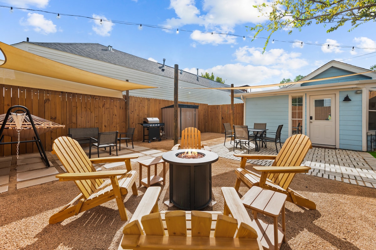Step into 'Midtown Abode', a modern and stylish 3BR home in the heart of Houston. This property boasts two separate living areas and a beautifully landscaped outdoor space, perfect for relaxation or entertaining. Unwind in the hammock, enjoy evenings by the firepit, or indulge in the standalone tub in the spacious master bath. Ideal for families or groups, this home offers a serene escape with the convenience of a central location. Experience comfort and style on your next city getaway.