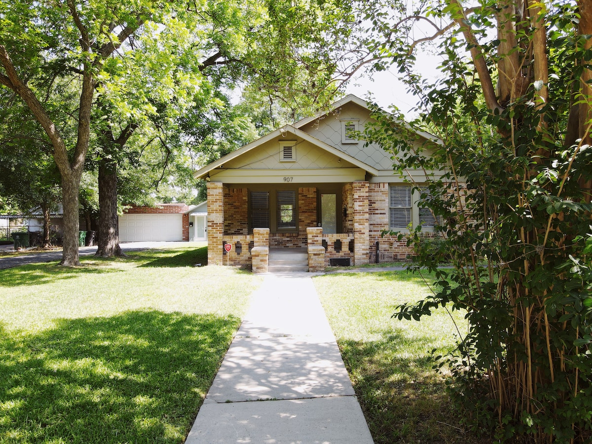 This newly renovated Historic Near Northside House is conveniently located in the shadow of downtown. This house has great indoor and outdoors spaces. The property is 2 blocks from the light-rail station and 2 blocks from the Heights Hike and Bike Trails. Perfect for a weekend stay or extended stays, with a full kitchen, working desk, and dedicated off-street parking. Enjoy a concert at the near by White Oak music hall, or dine at one of many local bars and restaurants
