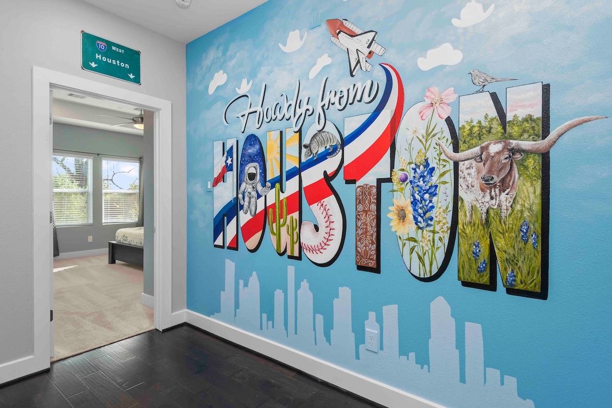 WIDE OPEN SPACE (3 STORY 2600SF) 24/7 Self check-in Amenities: 20ft floor to ceiling windows 120" projector Hi-speed wifi 2nd Story Balcony overlooking Downtown Big Chef's Kitchen Make a cocktail in the minibar and swing in an oil barrel while watching the sunset over downtown. Walk to Minute Maid, Toyota Center, PNC Stadium, Discovery Green, Hilton Americas & George R. Brown Convention Center in minutes! Enjoy attractions like 8th Wonder Brewery, Graffiti Park, Chapman & Kirby + many more!