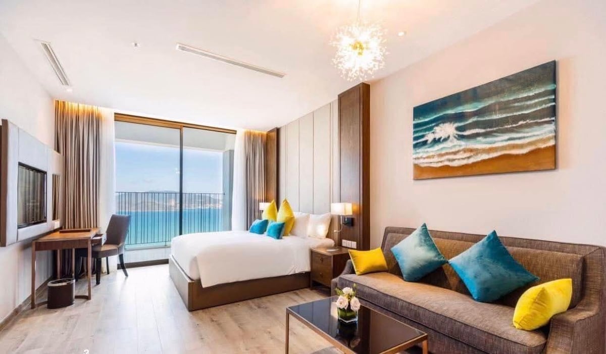 This is the choice for couple with 1 bed room and 1 living room connect to each other, and a bathroom with bathtub. Located in the buidling of Maris Hotel Nha Trang in the central, 200m to the beach where you can enjoy the vibe with restaurants, spa, pub nearby. Breakfast is included everyday from 6:30am to 9:30am at the restaurant of the hotel on the 2nd floor. You have access to the pool & gym on the 21st floor, and chill out at our public rooftop bar.