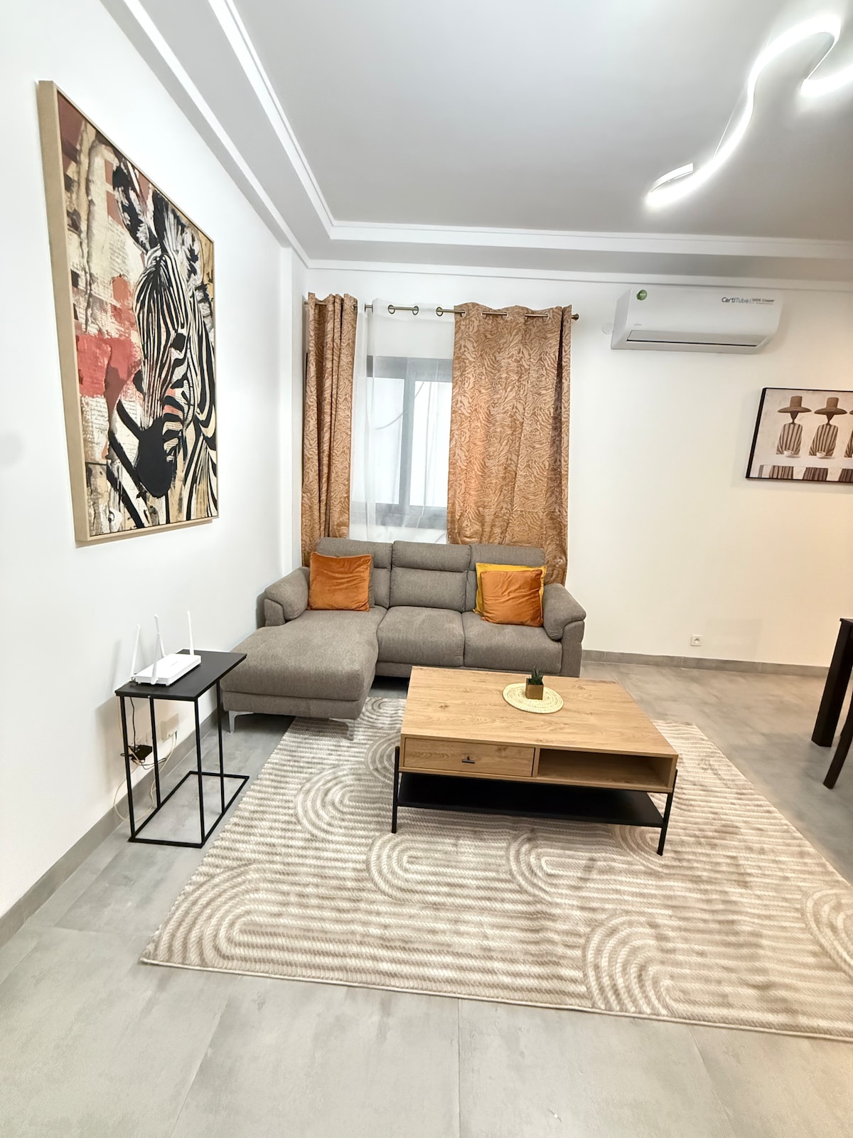 Oubliez vos soucis dans ce somptueux appartement se trouvant au 4ème étage avec ascenseur dans une résidence sécurisée. Sa décoration époustouflante vous fera apprécier votre séjour dans un confort total.. L'appartement est totalement climatisé, équipé de deux grands salons, d’une Smart TV 4K, de la Fibre optique, Netflix, Canal, un service de gardiennage assuré 24h/24. Un van en location peut être mis à votre disposition pour vos transferts à l’aéroport mais aussi pour vos déplacements.