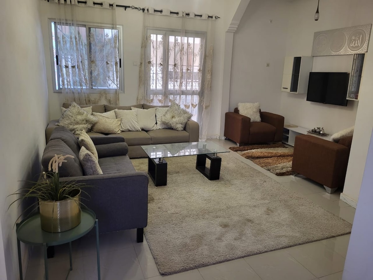 Appartement paisible et somptueux situé dans une villa à l’intérieur d’une cité résidentielle avec un espace vert privé et un système de gardiennage collectif pour garantir un cadre de vie à tous les résidents. Il est parfait et élégant pour les groupes. L’accès de l’appartement est facile à partir de la VDN. Il est proche de toutes les commodités dans la partie résidentielle, gérée par un Syndic de copropriété et non loin des restaurants et des supermarchés dans la partie commerciale.