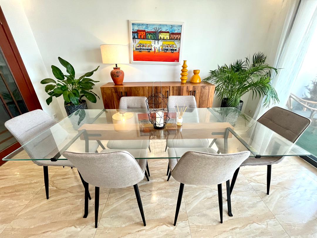 Spacieux Appartement 150m2 très confortable dans une zone calme Grand balcon vue mer sans aucun vis à vis 3 chambres pouvant accueillir 6 adultes et 1 bébé 2 salle de bain 1 wc invitée Équipement et meuble et de qualité Cuisine équipée ++ Dressing & Télévision dans les chambres 3 grand lits + 1 lit parapluie Volet électrique dans chaque chambre 6 Climatiseurs ainsi que 3 ventilateurs Wifi dans tous l’appartement Gardien d’immeuble 24/24